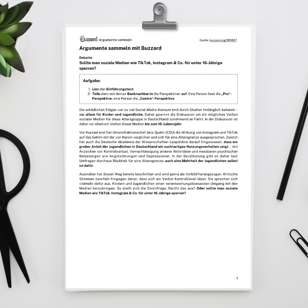Mit dem Buzzard-Lehrkräfte-Abo haben Sie jederzeit aktuelle, kontroverse Debatten inkl. Unterrichtsmaterial fürs Klassenzimmer parat – fertig aufbereitet, didaktisch fundiert, täglich neu.